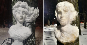 Местные жители прозвали эти работы снежными горельефами. Среди персонажей на деревьях появляются ангелы, греческие богини, сказочные герои, цветы — получается галерея образов. Отдельного внимания заслуживают снежные копии работ эпохи Возрождения.