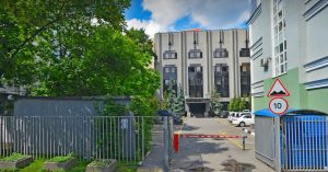 Интересно, что, по информации с «Яндекс.Карт», в этом доме расположено представительство компании «Фрау Шмидт», выпускающей бытовую химию. На сайте компании так же до сих пор указан тот же адрес. Однако на видео, снятом «РИА Новости», заметно, что у входа уже что-то делают рабочие, а на парковке стоит автомобиль с дипломатическими номерами.