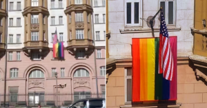 Посольство США в Москве вывесило радужный флаг на своем фасаде
