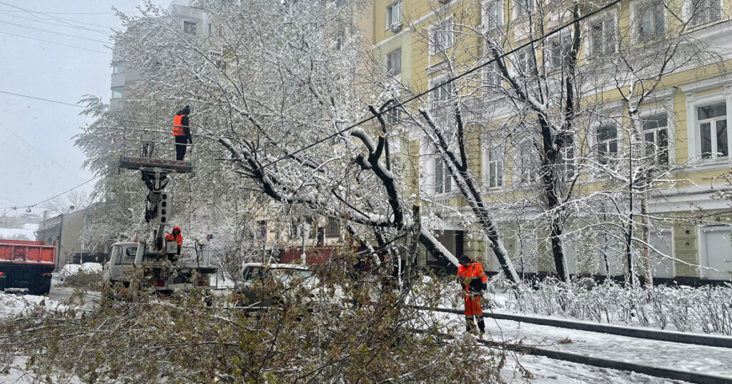Почти на 2 мм побит также абсолютный суточный рекорд по осадкам 1880 года. Высота снежного покрова в среднем по городу — 3 см, но в отдельных местах образовались сугробы до 10 см, рассказывает Евгений Тишковец. Эти сугробы усугубляются гололедицей под ними и шквалистым (до 20–25 м/с) ветром над ними. За ночь этот самый ветер вкупе с налипшим на ветви снегом повалил десятки деревьев по всему городу.