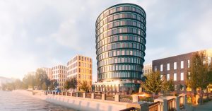 Появился проект 11-этажного ЖК в виде стопки монет на Серебрянической набережной — напротив Иностранки