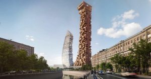К площадке «Рубцовско-Дворцовая, 1/3» девелоперы присматриваются давно. Там стоит детская больница имени святого Владимира, для которой построили новый корпус на улице Матросская Тишина. В июле уже появлялся проект на эту территорию — небоскреб в виде буквы М. Но, как выяснилось, есть и другой, не менее впечатляющий вариант от бюро Kleinewelt Architekten.