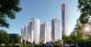 Неудивительно и то, что мы снова видим небоскребы — бюро Скуратова специализируется именно на них. Авторы концепции хотят, чтобы на участке поместилось девять разноэтажных корпусов, один из которых будет «белоснежной доминантой».
