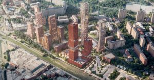 Проектом возможного комплекса высоток поделился телеграм-канал «Недвижимость инсайды». На визуализациях видно, что на территории грузового двора планируется построить целый жилой квартал из «разрезанных» небоскребов разной формы, с прудом и общественными пространствами. Проект, однако, вызывает вопросы — еще в 2008 году, когда обсуждались перспективы застройки Митьково, эксперты подчеркивали, что рядом расположен памятник архитектуры — Ново-Алексеевский монастырь. А это значит, что дома здесь должны быть малоэтажными.