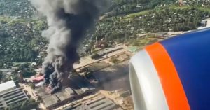 Пожар в цехе по производству керамических плит видно из окон самолетов, садящихся в Шереметьево