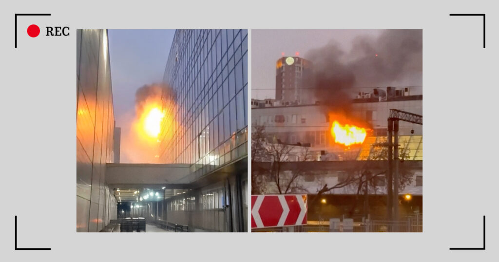 Пожарные больше часа тушили огонь в бизнес-центре «Варшавская Плаза»