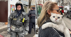 Пожарный вернулся в горящий дом, чтобы спасти кошку