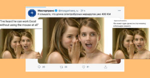 То ли дело Мосгортранс — наш городской перевозчик. Вчера компания опубликовала сухую новость о том, что в 2020 году длина маршрутов, по которым ходят электробусы, увеличилась на 107 км и в общей сложности перевалила за четыре сотни. И для того, чтобы похвастаться, в твиттере поделилась мемом с двумя приятно удивленными девушками, где одна шепчет другой: «Я слышала, что длина электробусных маршрутов уже 400 км».