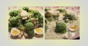 Получилось деконструированное блюдо: ингредиенты подаются отдельно, в виде арт-объектов, напоминающих культовых персонажей.