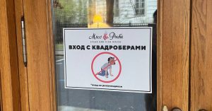 На огромной популярности квадробинга сейчас играют многие, в том числе и рестораны. Раньше они только поощряли участников движения и клеили на двери заведений таблички в стиле квадробер friendly. Теперь некоторые от них уже устали и не хотят пускать квадроберов внутрь, видимо, приравнивая их скорее к животным, нежели к людям.