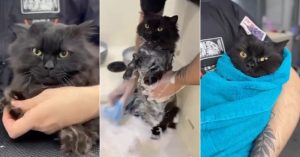 В телеграме завирусился ролик, как черного кота по кличке Люцифер моют и чешут в московском груминг-салоне.