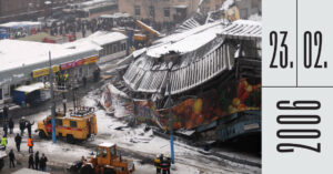 Все кончилось в 5.15 утра 23 февраля 2006 года. Неспящий рынок, как обычно, был полон мигрантами и продавцами, готовившимися к открытию. Сначала раздался резкий треск, потом сверху посыпались битые стекла, а через несколько секунд крыша обрушилась, увлекая за собой железобетонные конструкции стен. Рухнувший купол накрыл площадь более 3 тыс. кв. метров. Около ста человек оказались под завалами. Все произошло так стремительно, что никто даже не успел понять, что случилось. Вот как описывают это очевидцы. «Я почувствовал, как будто земля под ногами трясется, — вспоминал продавец рынка Сархан Панахом. — Спросонок никак не мог разобрать, что же происходит. Кто-то подбежал ко мне и закричал, что нужно уходить. Я похватал носки, ботинки, куртку и выбежал на улицу. Тут же на то место, где я пять минут назад спал, рухнула крыша».