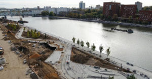 ЖК «ЗИЛарт», ставший фактически новым районом на месте бывшего Завода им. Лихачева, время от времени поставляет городские новости — сооружает отличный парк «Тюфелева роща», строит дома необычной формы, делает самую большую в Москве благоустроенную набережную Марка Шагала, фактически новый небольшой парк, первый километр которого уже открыт для посещения. Достраивают еще два километра восемьсот метров. И вот для них решили сделать нечто, чего не делали почти никогда (точнее, делали, но еще во времена строек-гигантов) — изменить русло Москвы-реки. Об этом сообщила компания ЛСР, застройщик «ЗИЛарта».