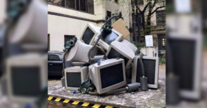 Выглядит эта инсталляция скорее как памятник удаленке где-нибудь четверть века назад: все мониторы компьютеров эпохи первого «Пентиума». Но если бы тут появилась гора макбук-эйров 2020 года выпуска, памятник продержался бы недолго.