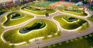 Помимо «московского стандарта» (спортивные и детские площадки, сеть велодорожек, зона для воркаута, пергола) здесь будут экстрим-парк, открытый кинотеатр, а также пруд с фонтанами — длиной 300 метров, прогулочные и выставочные аллеи с ландшафтными композициями.