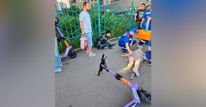 Upd: сервис кикшеринга «Юрент» забанил в своей базе виновника аварии.