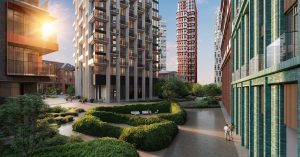 Также в этом комплексе будет три внутренних двора: Ивовый, Рябиновый и Кленовый, а еще пруды с настилом для йоги, каскадом и гейзерами, фонтаны и ручей, пересекающий детскую площадку. ЖК достроится к 2027 году в Электрическом переулке.