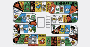 Глава лаборатории Иван Филь говорит, что его подразделение сделало квест, чтобы развлечь сидящих дома москвичей. Но, кажется, у них получилось нечто большее — своего рода экстремальная «Монополия», в которой одним игрокам даны репрессивные полномочия, а другим надо не разориться, и всем надо не умереть и каким-то образом дойти до финиша. Очень похоже на нашу жизнь, не находите? В этом смысле финишной точкой стоило бы сделать выход из карантина, а не мусорный контейнер.