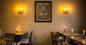 Вуду-алтарь и канделябры команда проекта собирала по винтажным магазинам и французским ярмаркам антиквариата, а посуду вручную изготавливала соосновательница Евгения Шассаньяр, известная москвичам по проектам «Парник» и Cafe Michel.