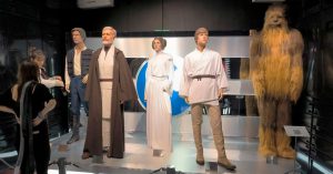 А еще здесь воссоздали ландшафт планеты Татуин, а также Набуанский звездный истребитель N-1 в натуральную величину, 4-метровый боевой шагоход AT-AT и 10-метровый гоночный под Энакина Скайуокера. Кстати, обещается, что гости смогут посидеть за штурвалом одного из сверхскоростных звездолетов и пожать руку штурмовику — в общем, здесь можно будет себя почувствовать как на съемочной площадке. Всего представлено более 200 экспонатов.
