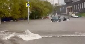 «МКАД выходит из берегов», — пошутил телеграм-канал «Это Москва», опубликовавший видео, на котором по МКАД плывут машины, причем плывут в прямом смысле.