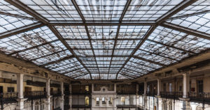 А заниматься есть чем. Например, «фонарем» — так называется стеклянный купол, придуманный для здания Владимиром Шуховым и обеспечивавший его главный атриум естественным светом. Или конструкциями братьев Весниных, которые они разработали для проекта значительного русского архитектора Оскара Мунца — почтамт, кстати, единственное здание его авторства в городе. «Фонарь» до последнего времени был под угрозой обрушения, само здание протекало и подвергалось другим вредным воздействиям.