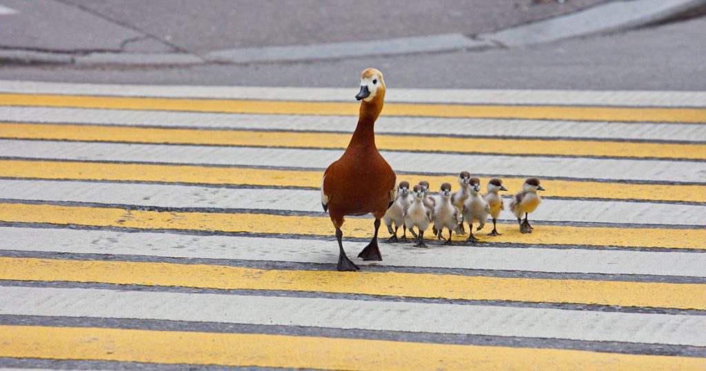 Каждую весну утки с утятами мигрируют: как только птенцы подрастают, они начинают искать себе жилище поближе к воде. Причем очень часто выбирают максимально опасные маршруты, в том числе через многополосные автомобильные дороги.
