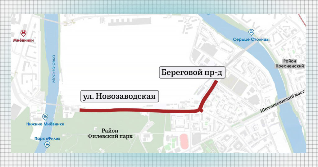 Чтобы связать две магистрали, планируется построить и реконструировать почти 2 км дорог, рассказал мэр Сергей Собянин. Реконструкция коснется участков Новозаводской улицы и Берегового проезда. В результате сократится время в пути между районами Хорошево-Мневники и Филевский Парк.