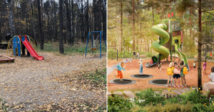И вот теперь власти предлагают все пять частей соединить удобным пешеходным маршрутом, а также провести «экологическую реабилитацию» — неэкологичный асфальт заменить гравием (и сразу видна проблема — на роликах и самокатах не покататься, хотя природе так лучше), а также посадить больше деревьев. Кроме того, «народные тропы» тоже сделают официальными дорогами. А старые спортивные и детские площадки заменят новыми, на одном из рендеров на них даже есть небольшие стационарные батуты.