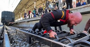 Силач Роман Новиков установил мировой рекорд, сдвинув состав весом почти 1,5 тонны на Белорусском вокзале