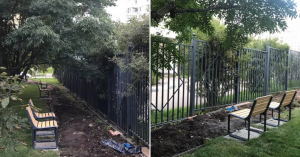Фотографию уединенных новых скамеек опубликовал телеграм-канал «Москва с огоньком». Они стоят у самого забора и притом в изрядном количестве. В левой части снимка видно дорожку, где они смотрелись бы куда более уместно. Интересно, как же так получилось. Может быть, казенных скамеек завезли слишком много и не знали, куда деть? Вот и поставили где попало. Удобно, опять же, для водочных церемоний — вместо того чтобы распивать под фонарем, можно уединиться у забора и никому не мешать, если не кричать совсем уж громко.
