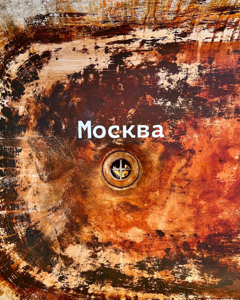 Арт-объект стоит у торца девятиэтажного дома по адресу улица Троллейная, 22. Надпись «Москва» размещена у сливного отверстия ванны, обозначающего столицу, а ржавое дно представляет собой карту России.