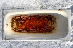 Арт-объект стоит у торца девятиэтажного дома по адресу улица Троллейная, 22. Надпись «Москва» размещена у сливного отверстия ванны, обозначающего столицу, а ржавое дно представляет собой карту России.