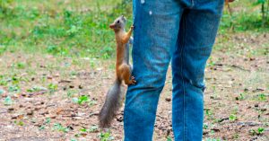 Смотрите, как москвичку атаковала стая белок в Кузьминском лесопарке