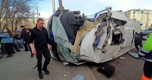 Смотрите, как на Хамовническом Валу перевернулся автозак с задержанными