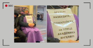 В одном из вагонов ехал парень, который просто уснул. На глазах — маска для сна, в ушах — наушники, на груди — табличка с просьбой: «Друзья! Разбудите, пожалуйста, на улице Академика Янгеля!!!». Судя по всему, будильникам в 2026 году он больше не верит. Только людям.