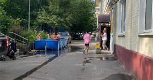 Снова жара — на Нижней Сыромятнической местные поставили бассейн во дворе жилого дома