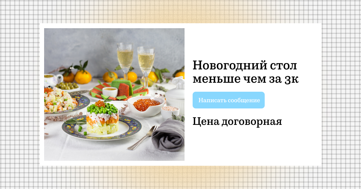 На появившееся в сети объявление с соответствующим содержанием обратил внимание канал «Москва 24». «Соберу новогодний стол меньше чем за 3К», — обещает автор.