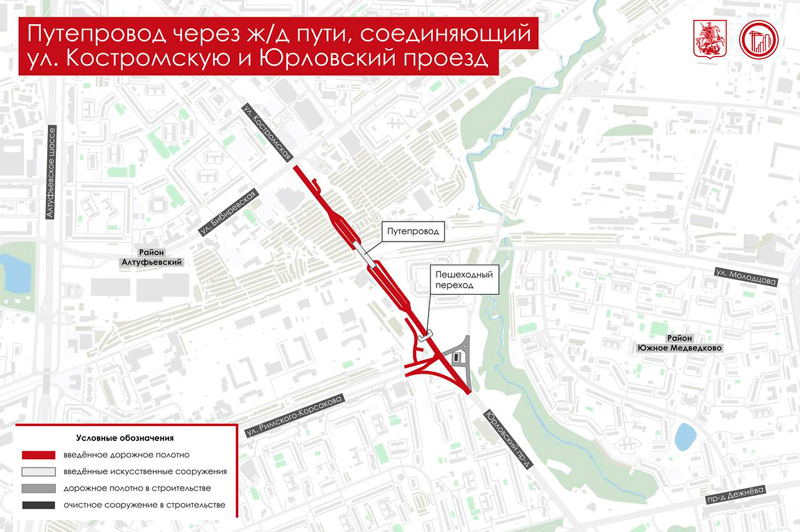 В ходе работ был реконструирован участок Сельскохозяйственной улицы и построен путепровод через железнодорожные пути, соединяющий Костромскую улицу и Юрловский проезд.