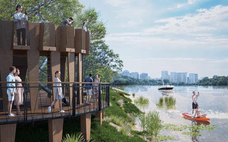 Шелепихинскую набережную сделают в том же духе — она станет длинным линейным парком вдоль воды. Здесь сделают непрерывный маршрут, также со спусками к воде. Появятся велодорожки и амфитеатры.