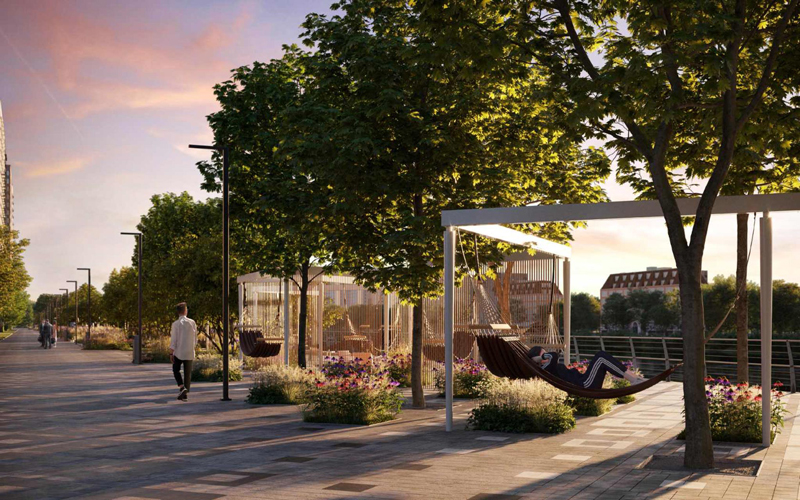 В Филевском парке доделают участок возле «Западного порта» — там появится широкая набережная с отдельными дорожками для велосипедов и бега, ступени к воде и террасы. Запланировано много зелени и мест для отдыха — под навесами, среди цветников, на разноуровневых лавках.