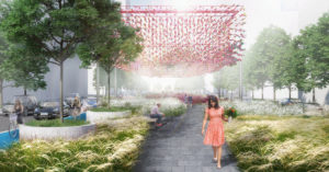 Самым динамичным местом, по задумке авторов, станет событийная зона, где единовременно смогут наслаждаться благоустройством до 700 человек. Обещают концертную площадку, большой водоем (зимой — каток), сад и кафе. Понадеемся, что к моменту сдачи проекта коронавирусные ограничения все же останутся позади, чтобы всеми удобствами можно было бы пользоваться без всякой социальной дистанции.