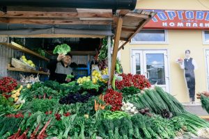 Дальше по рядам — соленья, которых много в более холодное время года (квашеная капуста, увы, в большинстве своем сделана с использованием уксуса), а также овощи и фрукты. Тут такие надписи на ценниках (орфография и пунктуация сохранены): «Узбекская изумительная черешня сочная очень сладкая сказка», «Изумительн молдавская черешня очень сочная очень очень сладкая», «Московские салатные огурчики не горькие супер пупер», «Бакинские розовые сладкие помидоры очень очень вкусные». Я здесь практически ничего никогда не покупаю, не верю этим надписям: на рынке много той же самой черешни и помидоров, только без славословий и дешевле процентов на десять-пятнадцать. Особенно в той половине рынка, которая ближе к кладбищу. Там, кстати, те помидоры, которые тут называют бакинскими, вполне могут называться ростовскими.