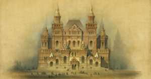 Архитектор Владимир Шервуд, который выиграл конкурс проектов здания будущего Исторического музея, был внуком английского инженера, переселившегося в Россию, но вдохновлялся он примерами русского зодчества XVI−XVII веков. Интерес к национальной истории и культуре в те годы вызвал к жизни целый архитектурный стиль, который часто называют «псевдорусским». Строительство музея, который должен был стать символом русского прошлого, вызывало острые споры. Один из основателей музея историк Иван Забелин, например, писал, что архитекторы музея «поступают с великим своенравием и проектируют что-то совсем не русское». Но спустя столетие ЮНЕСКО внесло здание ГИМ в свой список Всемирного наследия как часть ансамбля Красной площади. Как и сама русская история, ее главный музей рождался как сплав старинных традиций и иностранного влияния, взаимодействие которых создавало новые формы национальной культуры.