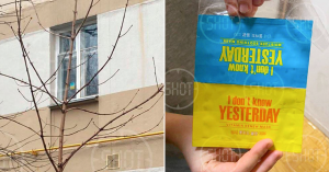 Так, 19-летней жительнице дома на проспекте Мира по имени Карина на двери квартиры кто-то за что-то нарисовал букву Z (так стали помечать жилье тех, кто выступает против спецоперации). Тогда девушка, по ее словам, расстроилась, перечеркнула Z, написала под ним лозунг, а также решила «украсить» окно своей квартиры на втором этаже двумя упаковками от косметических масок — желтой и голубой. Получился небольшой жовто-блакитний квадрат.