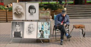 Проведенное исследование напоминает путешествие по нашему коллективному бессознательному.Уличные художники как персонажи городского пейзажа будут постарше не только современных курьеров, но и перестроечных зазывал — они работают на Арбате с середины 80-х и уже стали обязательной приметой этой улицы. Телеканал «Синема» обратил внимание на их стратегию по привлечению клиентов — чтобы усадить простого человека на стульчик, нарисовать и продать ему портрет, художник сначала рисует человека непростого. Канал вышел на Арбат и провел исследование, выяснив, каких знаменитостей рисуют чаще всего.