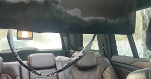 Сосульки с крыши в проезде Стратонавтов насквозь пробили крышу машины