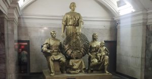 «Советская Белоруссия» — хороший пример позднесталинской монументальной скульптуры. Она украшала кольцевую «Белорусскую», пока в 1997 году торцевая стена, у которой стояла скульптура, не прекратила свое существование — вместо нее появилась лестница, ведущая ко второму выходу из метро.