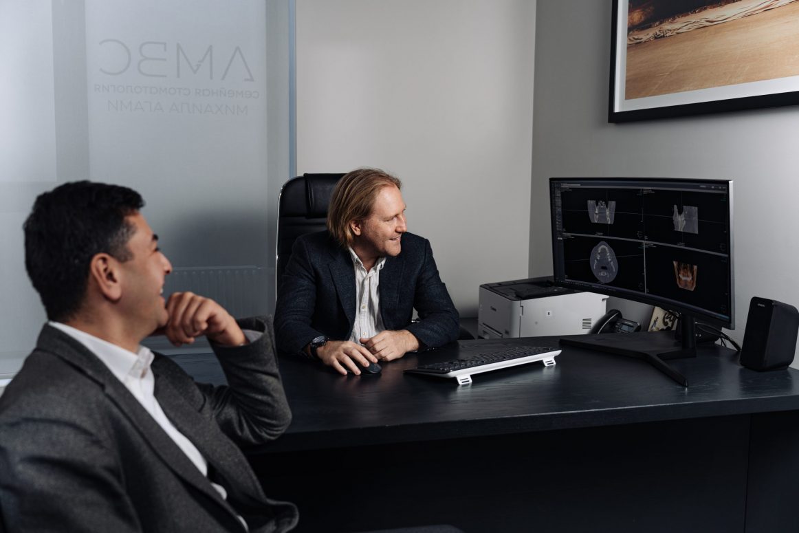 Каждый пациент начинает визит в клинику с гигиенического осмотра. При необходимости делают компьютерную томографию, после чего подключаются специалисты смежных направлений. Главный врач — ортопед — финализирует работу, следя за тем, чтобы не было ошибок, способных повлиять на сустав или прикус.