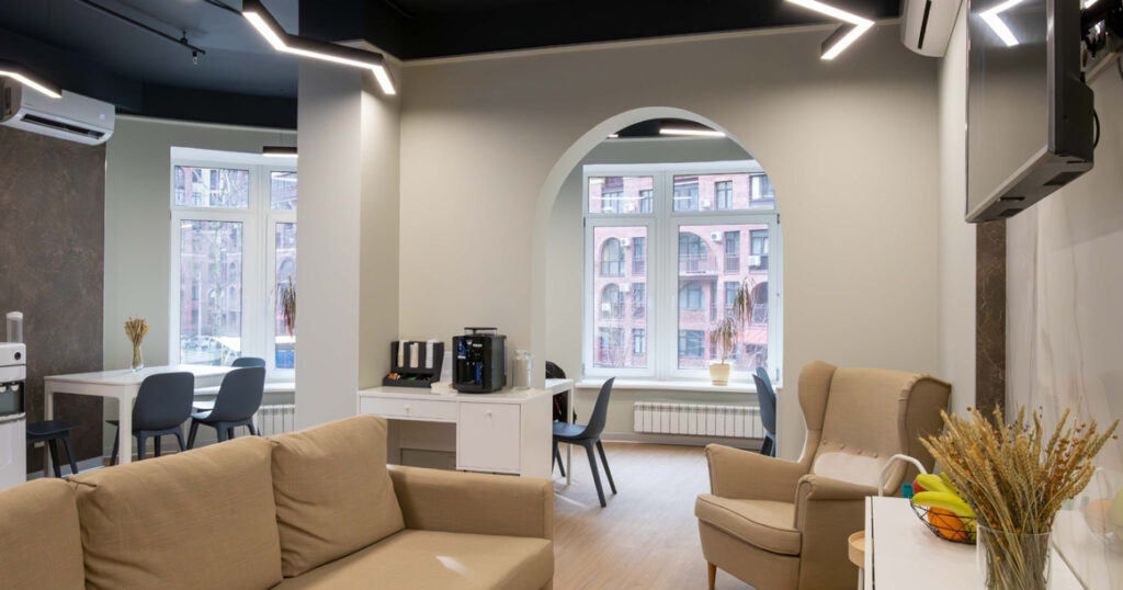 При этом рабочие пространства все чаще маскируются под уют: камин, мягкие кресла, большой общий стол. Это и для продуктивной работы, и, видимо, чтобы переговоры по зуму были менее травматичными и проходили в максимально расслабленной обстановке.